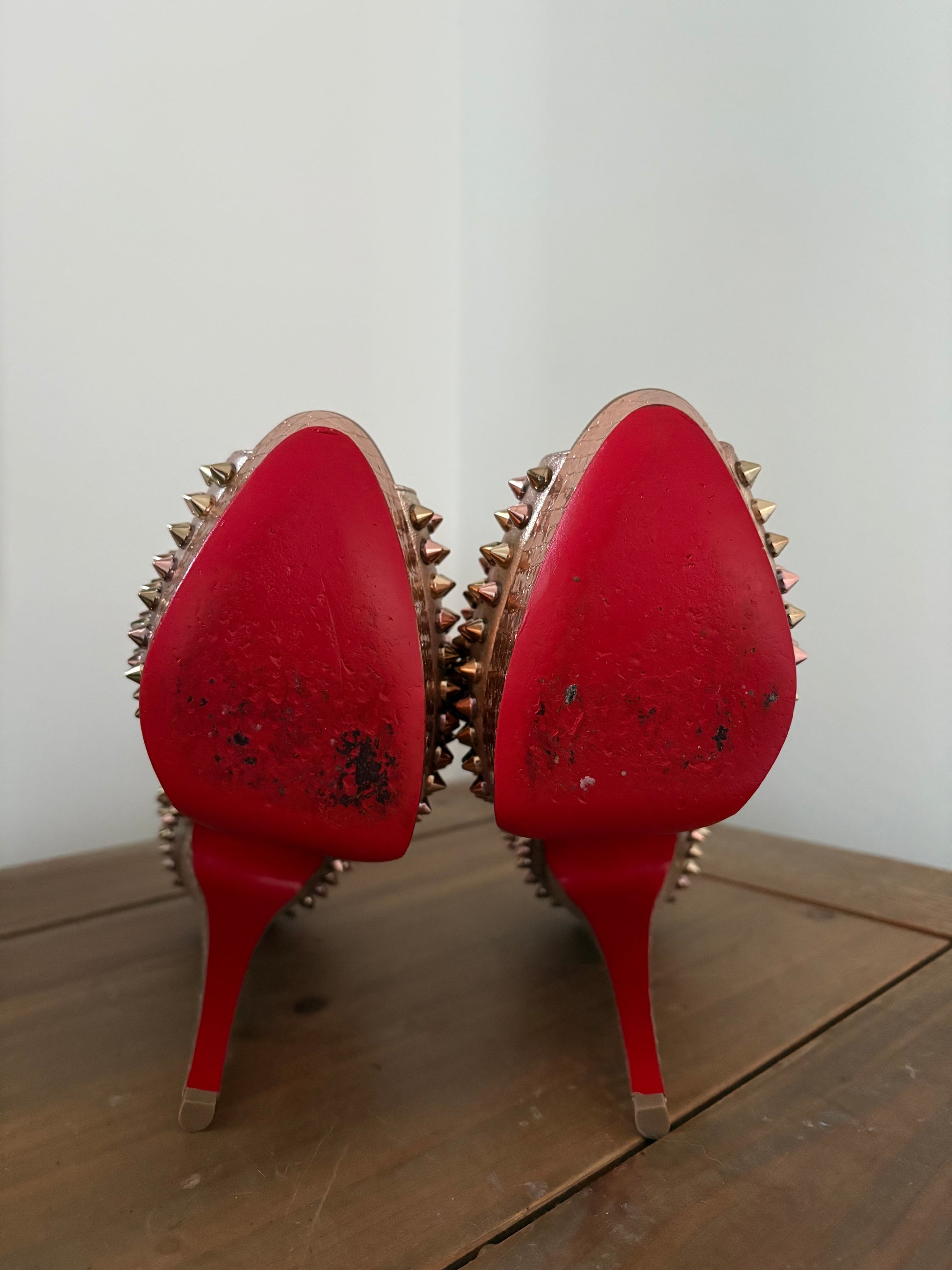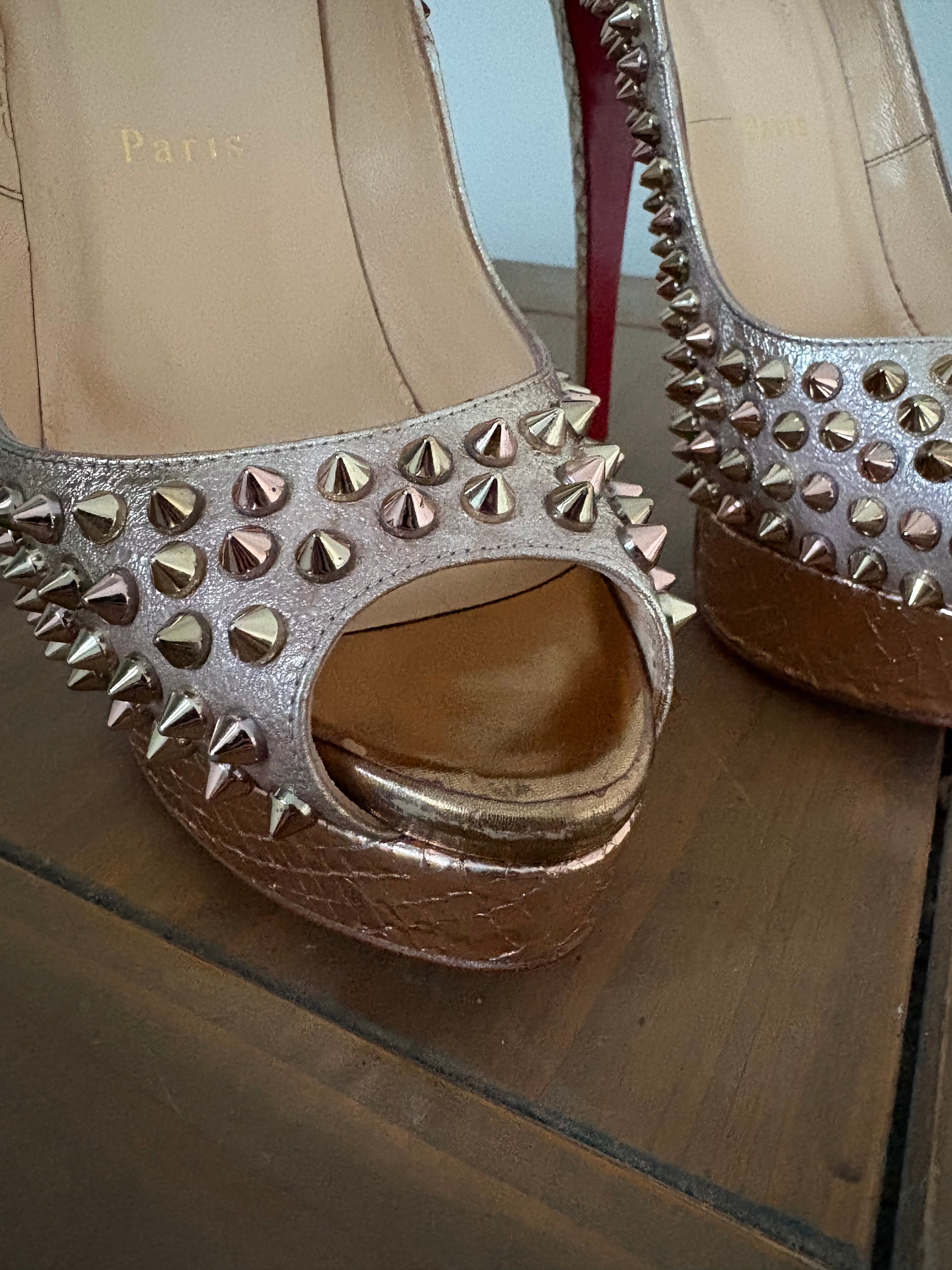 Nobody does heels like Christian Louboutin. These gold studded platforms are giving us 2010s vibes. Be a part of fashion history.